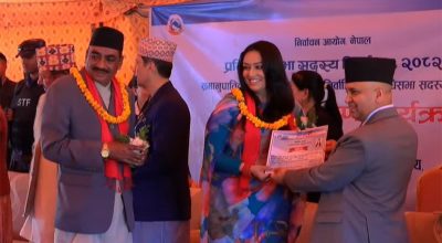 काठमाडौँ । निर्वाचन आयोगले समानुपातिकतर्फ निर्वाचित सांसदलाई प्रमाणपत्र प्रदान गरेको छ । बिहीबार आयोगमा आयोजित विशेष समारोहकाबीच आयोगका प्रमुख आयुक्त रामप्रसाद भण्डारीले समानुपातिकतर्फका सांसदहरुलाई प्रमाणपत्र प्रदान गरेका हुन् । समानुपातिक