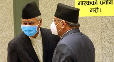 काठमाडौं । प्रधानमन्त्री शेरबहादुर देउवा र माओवादी केन्द्रका अध्यक्ष पुष्पकमल दाहाल ‘प्रचण्ड’ बीच भेटघाट भएको छ । प्रधानमन्त्री देउवा र प्रचण्डबीच सोमबार बिहान भेटघाट भएको प्रधानमन्त्रीका प्रेस सल्लाहकार गोबिन्द परियारले