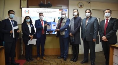 जर्मनी सरकारले नेपाललाई कोरोना भाइरसविरुद्धको ४१ लाख खोपको मात्रा हस्तान्तरण गरेको छ । मन्त्रालयमा आज आयोजित कार्यक्रममा नेपालका लागि जर्मनीका कार्यवाहक राजदूत डा स्टेफन रसेकले स्वास्थ्य तथा जनसङ्ख्यामन्त्री विरोध खतिवडालाई