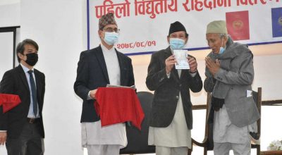 काठमाडौं – सरकारले विद्युतीय राहदानी (ई पासपोर्ट)को शुरुवात गरेको छ । शताब्दी पुरुष सत्यमोहन जोशीलाई पहिलो राहादानी प्रदान गर्दै ई पासपोर्टको शुरुवात गरिएको हो । बुधबार त्रिपुरेश्वरस्थित राहदानी विभागमा आयोजित