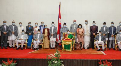 काठमाडौं । नेपाली कांग्रेसका सभापति शेरबहादुर देउवा प्रधानमन्त्री बनेको ८८ दिनपछि शुक्रबार मन्त्रिपरिषदले पूर्णता पाएको छ । सत्ता गठबन्धनका शीर्ष नेताहरूबीच मन्त्रालय भागबन्डामा कुरा मिलेपछि शुक्रबार प्रधानमन्त्री देउवाले मन्त्रिपरिषद् विस्तार
