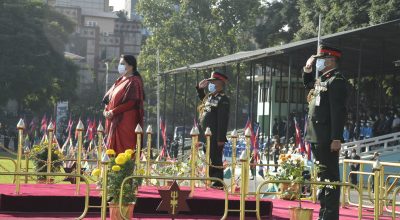 राष्ट्रपति विद्यादेवी भण्डारीले फूलपाती बढाइँ अवलोकन गरेकी छिन । नेपाली सेनाद्वारा आज सैनिक मञ्च टुँडिखेलमा आयोजित समारोहमा सरिक भई उनीले फूलपाती बढाइँ अवलोकन गरेकी हुन् । राष्ट्रपति भण्डारी नेपाली सेनाका