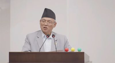 काठमाडौं । नेपाली कांग्रेसका सांसद भीष्मराज आङ्देम्बेले फागुन २१ को प्रतिनिधिसभा सदस्य निर्वाचनपछि बिहीबार बसेको नयाँ प्रतिनिधिसभाको पहिलो बैठकमा बोल्दै राष्ट्रिय एकता र लोकतन्त्रप्रतिको प्रतिबद्धता व्यक्त गरेका छन् । प्रतिनिधिसभाको