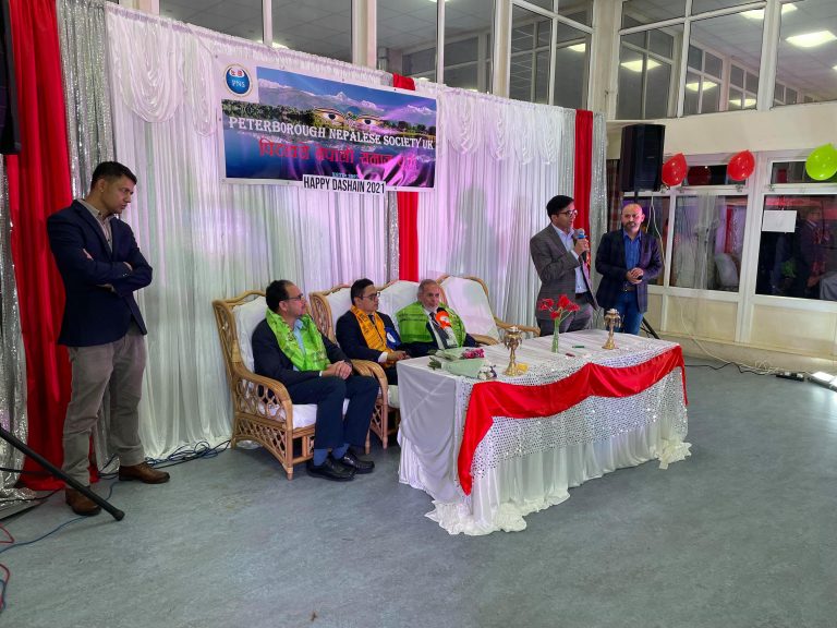 पिटरबरो। पिटरबरो नेपाली समाज युकेले २०७८ सालको बिजया दशमी र तिहार शुभकामना साँझ मनाएको छ ।नेपाली दुतावास लण्डनका द्वितीय सचिव रामबाबु नेपालको प्रमुख आतिथ्यतामा सम्पन्न शुभकामना साँझ वेस्टउडको स्टाफोर्ड हल पिटरबरोमा सोमबार सम्पन्न भएको हो । स्थानीय नेपाली समुदायहरुको बाक्लो उपस्थिति रहेको दशैं शुभकामना साँझमा दोस्रो र तेस्रो पुस्ताका नेपालीहरु पनि सहभागी भए । विदेशमा पनि नेपालीहरुले सांस्कृतिक पर्वकै रुपमा नेपाली खानपानसहित दशैको शुभकामना आदानप्रदान गरेका थिए ।