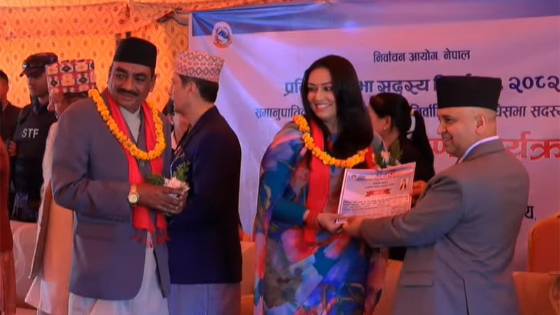 बिहीबार आयोगमा आयोजित विशेष समारोहकाबीच आयोगका प्रमुख आयुक्त रामप्रसाद भण्डारीले समानुपातिकतर्फका सांसदहरुलाई प्रमाणपत्र प्रदान गरेका हुन् ।