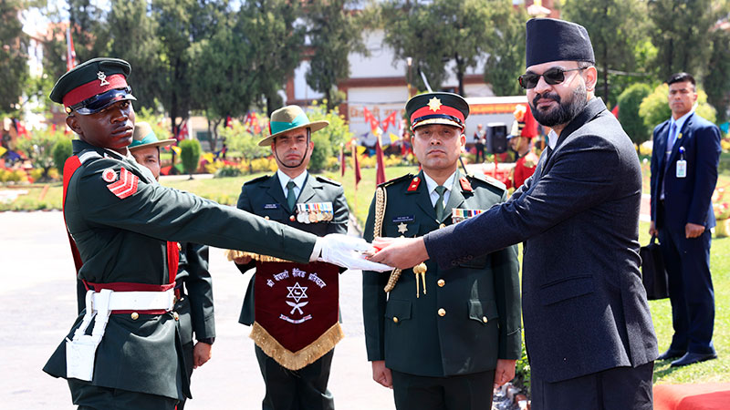 भक्तपुरको खरिपाटीस्थित नेपाली सैनिक प्रतिष्ठानमा आज आयोजित अधिकृत क्याडेट तालिमको आयुक्त पद प्रदान कवाज समारोहलाई सम्बोधन गर्दै उनले करिब ३६ महिनाको कठिन प्रशिक्षण सफलतापूर्वक पूरा गरी अधिकृत पद प्राप्त गर्न सफल क्याडेटहरूलाई बधाई तथा शुभकामना व्यक्त गरे ।