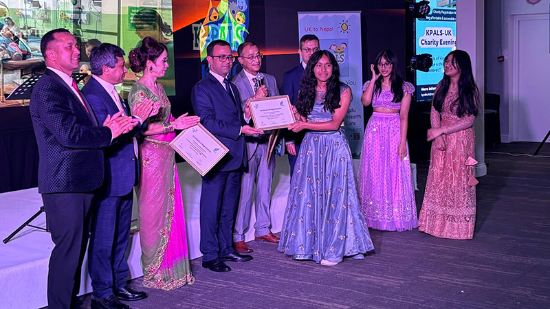 के–पाल्स यूकेले काठमाडौँ इन्स्टिच्युट अफ चाइल्ड हेल्थलाई सहयोग पुर्याउने उद्देश्यले ह्यारोस्थित ब्लु रुममा आयोजित च्यारिटीमा सांस्कृतिक प्रस्तुतिका साथै राफल ड्र र अक्सन पनि गरिएको थियो ।