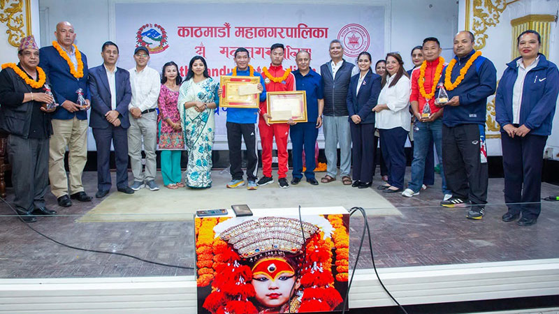 पदक विजेता खेलाडीहरूलाई नगदसहित काठमाडौं महानगरपालिकाबाट सम्मान