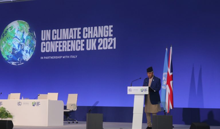 स्कटल्याण्डको ग्लास्गोमा सोमबार आयोजित जलवायु परिवर्तनसम्बन्धी विश्वसम्मेलन (कोप २६) अन्तर्गतको ‘वर्ल्ड लिडर्स समिट’ लाई सम्बोधन गर्दै प्रधानमन्त्री देउवाले जलवायु अनुकूलन र जोखिम न्यूनीकरण गर्दै कार्वन उत्सर्जनलाई घटाउन नेपालले गरेका प्रयासहरु विश्वका अन्य मुलुकले पनि अनुशरण गर्न सक्ने बताए।