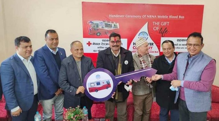 गैर आवासीय नेपालीहरुको सहयोगमा एनआरएनएको दोस्रो ‘मोबाइल ब्लड बैंक बस’ हस्तान्तरण