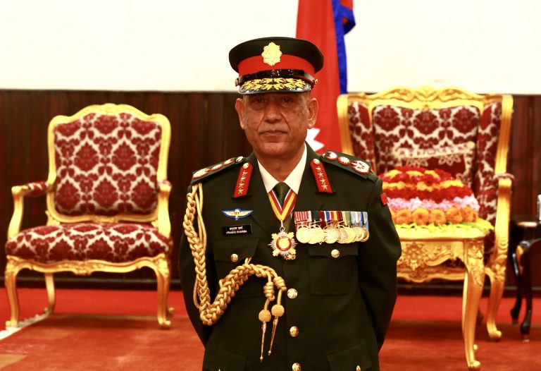 राष्ट्रपति भण्डारीद्वारा नवनियुक्त प्रधानसेनापति शर्मालाई दज्र्यानी चिह्न प्रदान