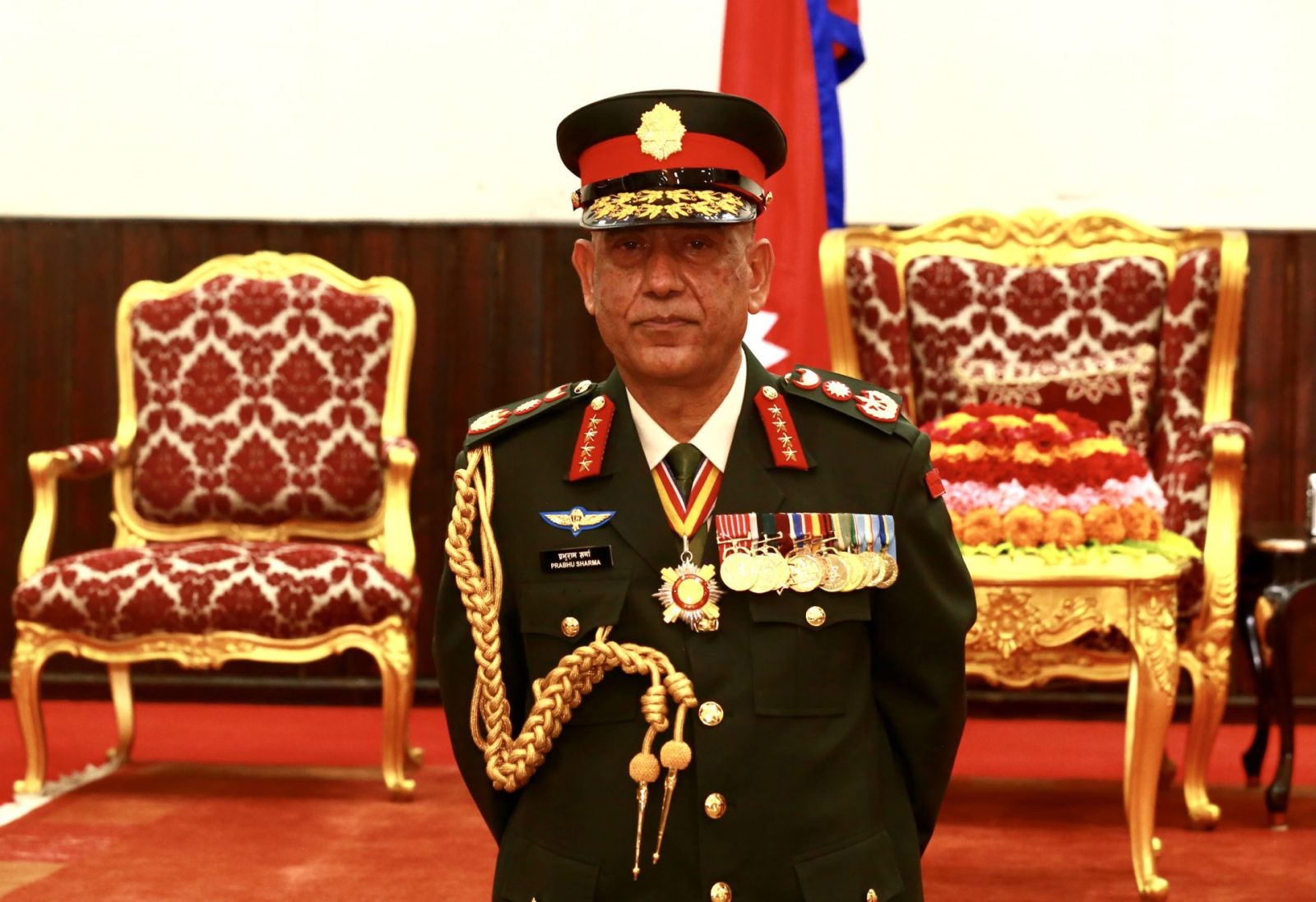 राष्ट्रपति विद्यादेवी भण्डारीले नवनियुक्त प्रधानसेनापति प्रभुराम शर्मालाई महारथीको दज्र्यानी चिह्न प्रदान गरेकी छिन् । राष्ट्रपति भवन शीतल निवासमा आज बिहिबार आयोजित विशेष समारोहमा नेपाली सेनाका परमाधिपति राष्ट्रपतिसमक्ष नवनियुक्त प्रधानसेनापति शर्माले पद तथा गोपनीयताको शपथ लिएका हुन् । मुलुकको प्रमुख सुरक्षा अङ्ग नेपाली सेनाको ४४ औँ प्रधानसेनापतिका रुपमा शर्माले तीनवर्षे कार्यकालका लागि आजैदेखि औपचारिकरुपमा सैनिक नेतृत्वको जिम्मेवारी सम्हाल्नेछन्।
