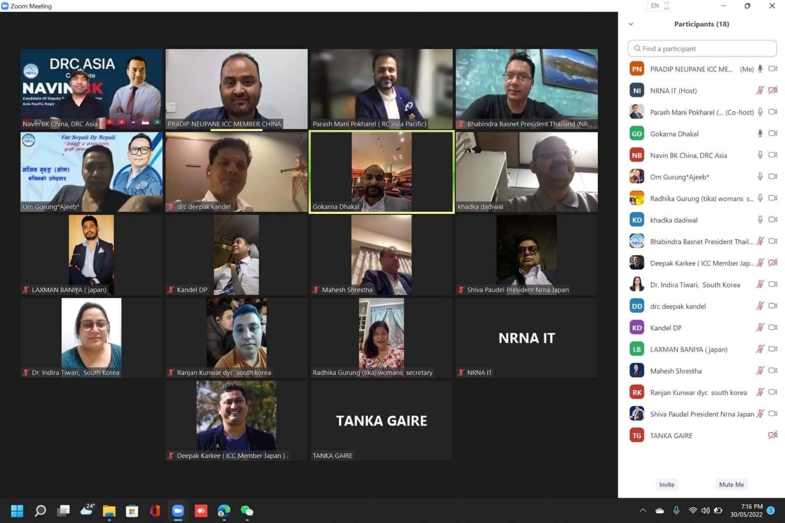 काठमाडौं-एनआरएनए एसिया प्यासिफिकको पहिलो बैठक भर्चुल माध्यामबाट सम्पन्न भएको छ। बैठकले प्रस्तावीत ५ वटा बुँदामा छलफल तथा निष्कर्ष निकालेको छ।